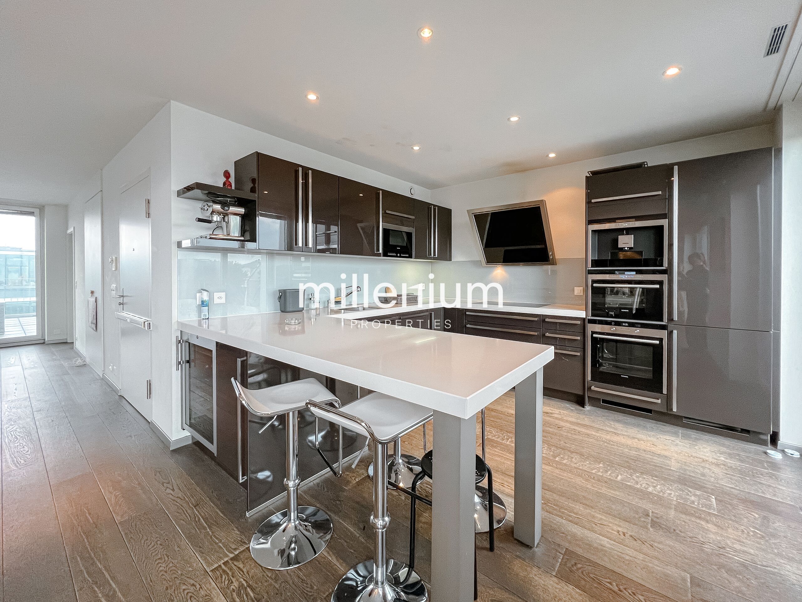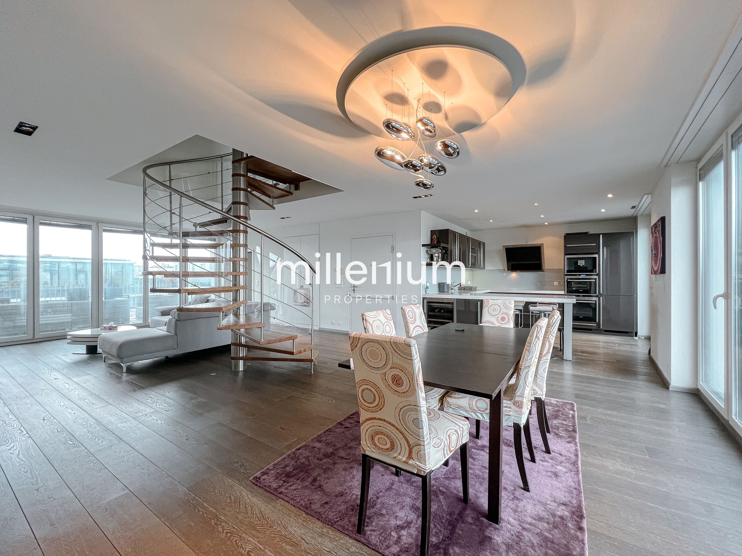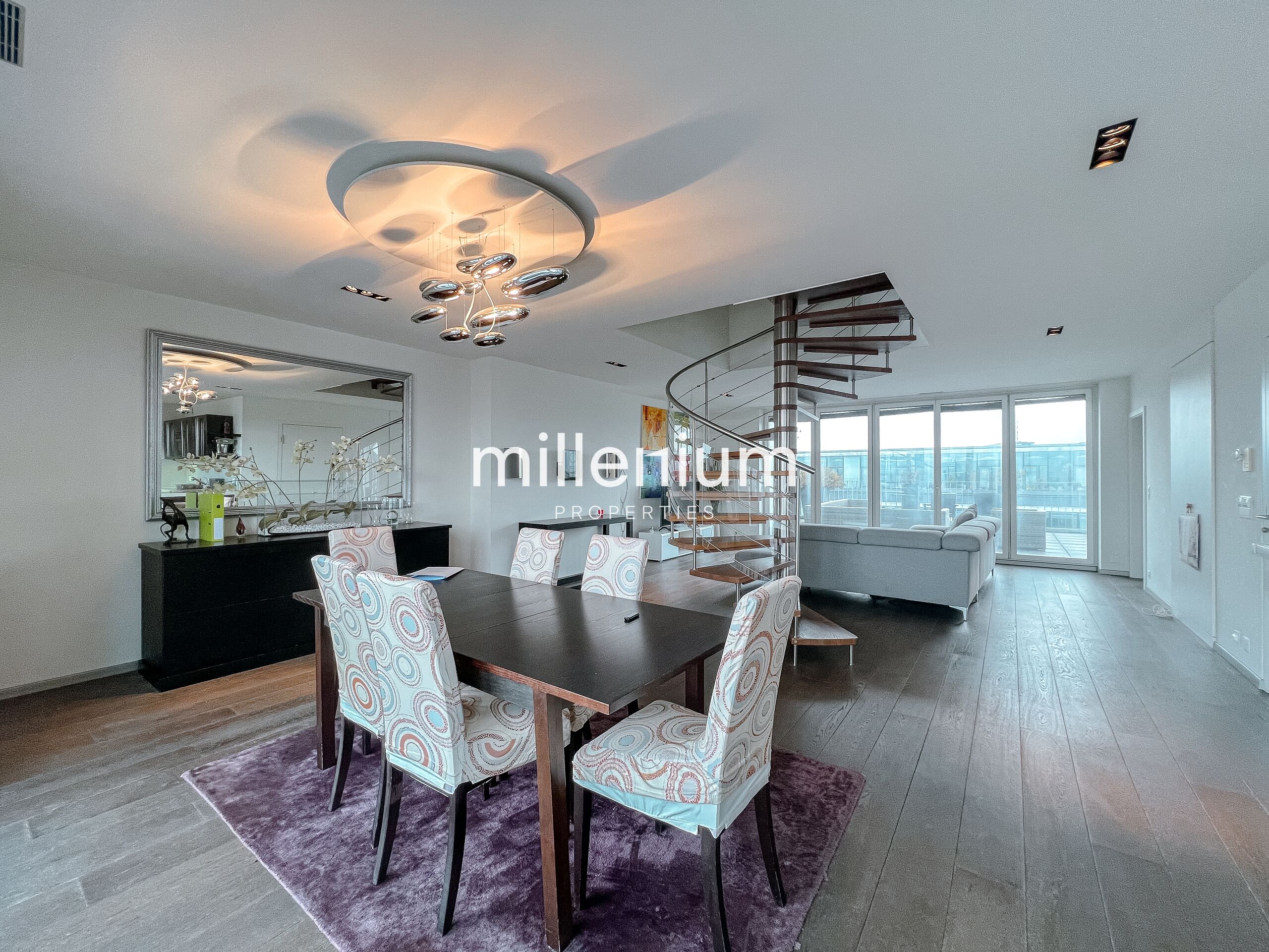 Ce duplex situé en attique au 7 et 8ème étages d’un immeuble sécurisé avec ascenseur bénéficie d'une vue imprenable sur le jet d'eau.