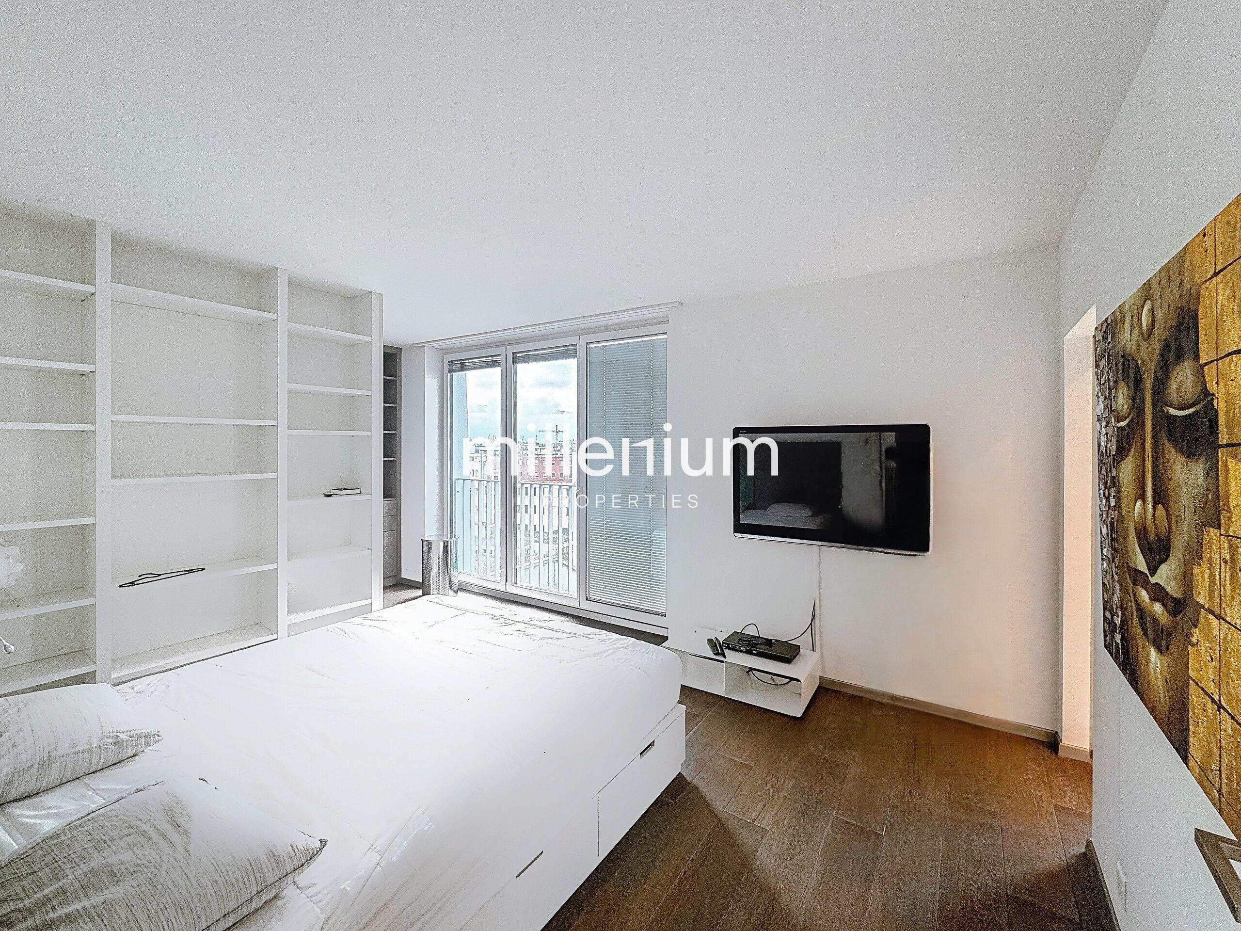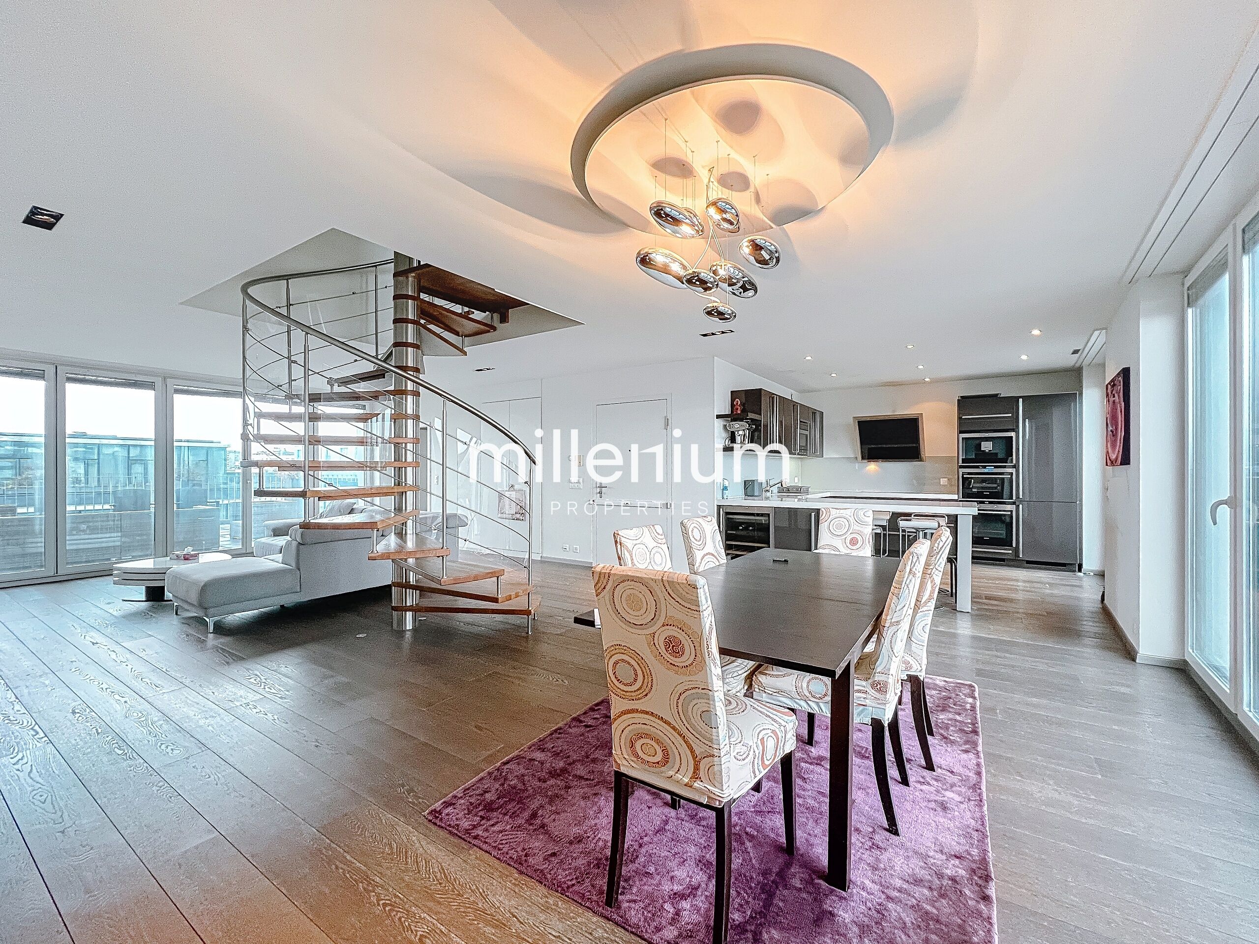 Ce duplex situé en attique au 7 et 8ème étages d’un immeuble sécurisé avec ascenseur bénéficie d'une vue imprenable sur le jet d'eau.