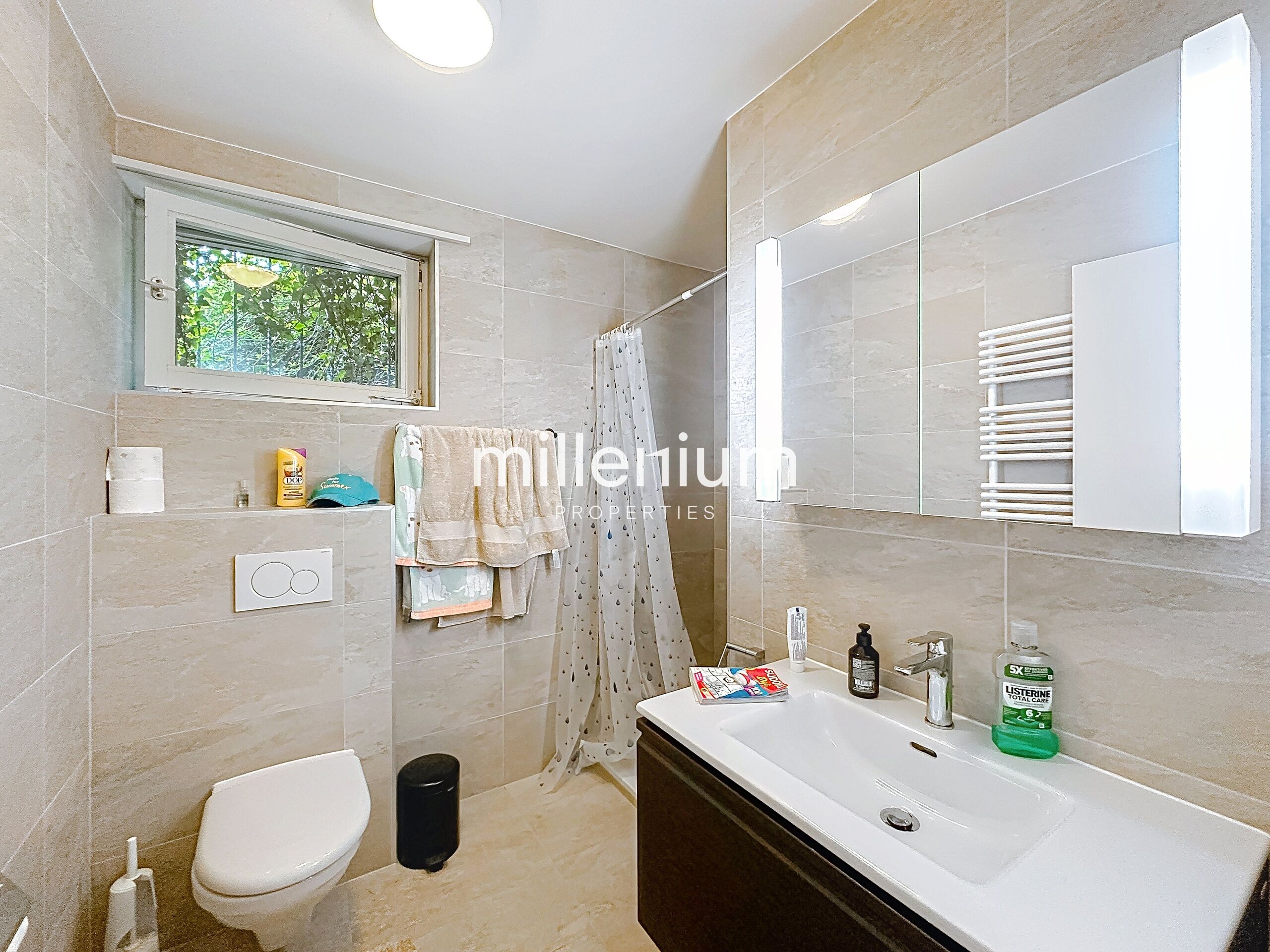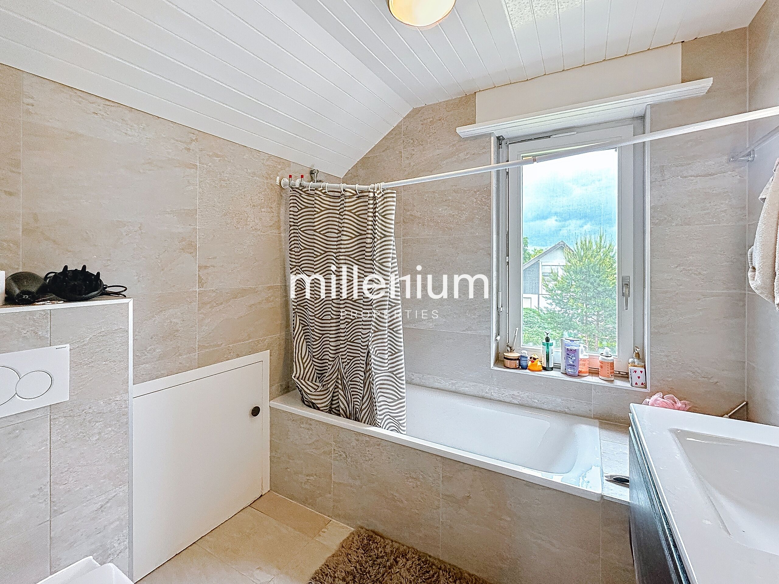 - Une salle de bains.