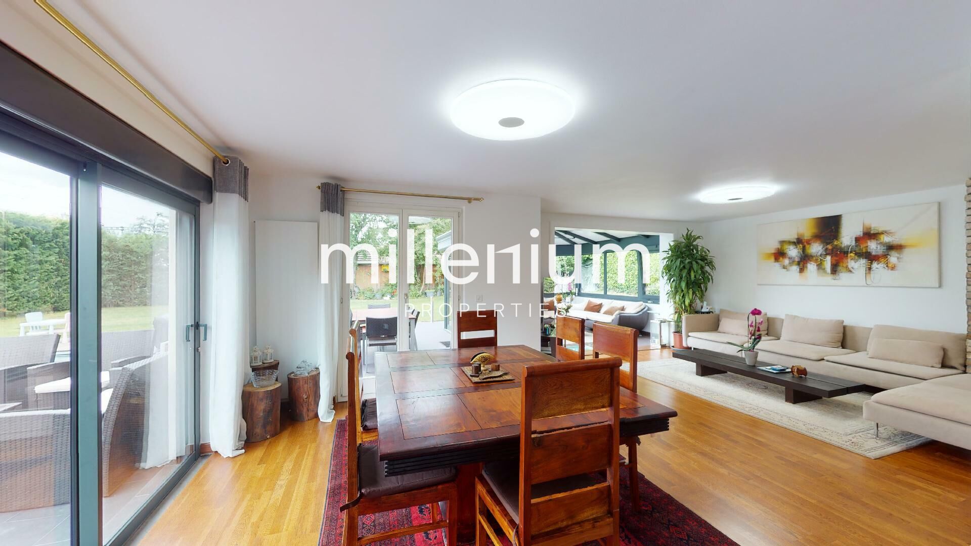 - Un superbe salon avec une salle à manger ouverte sur le jardin et la piscine,