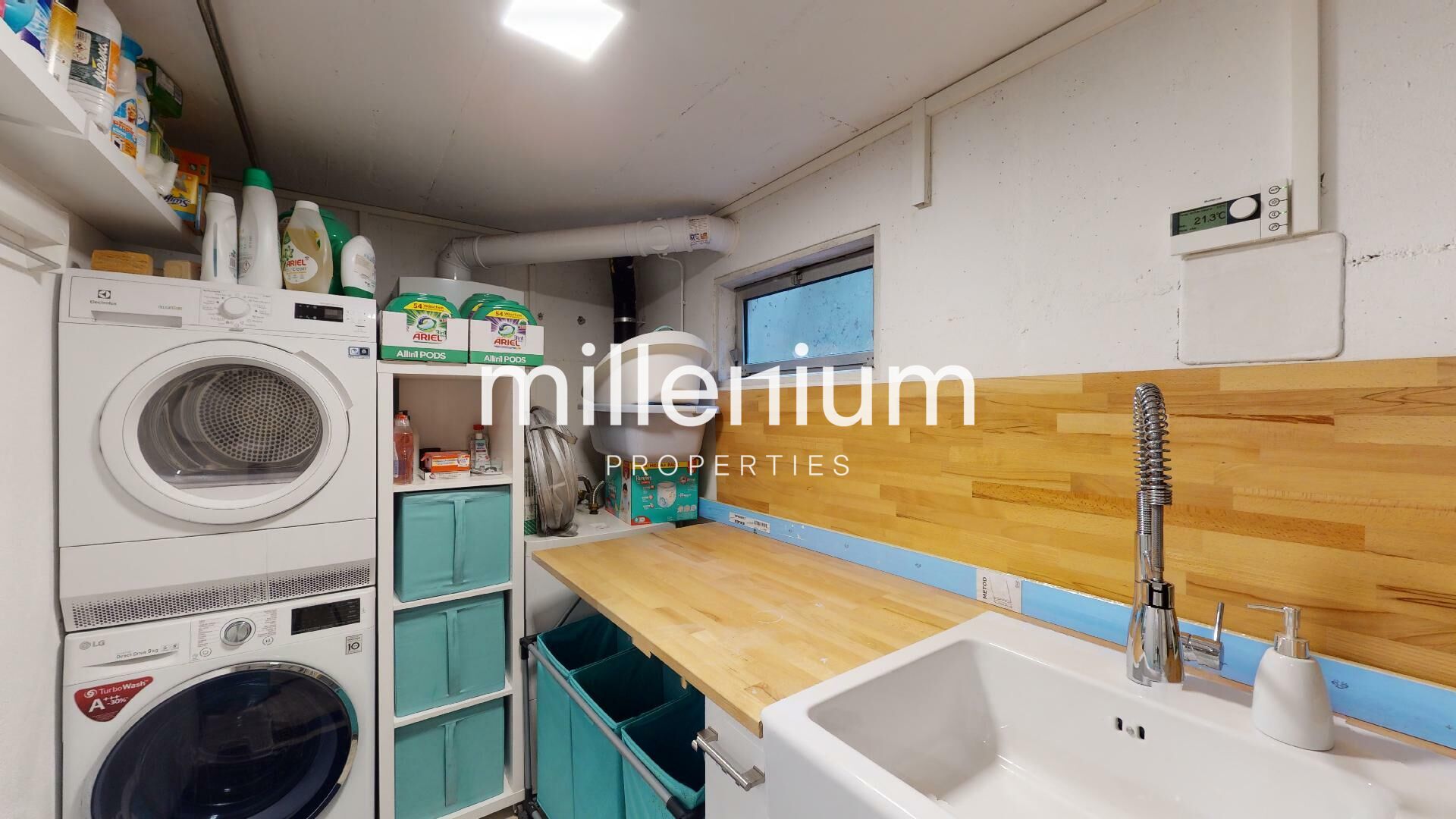 - Belle buanderie avec plan de travail dans laquelle se trouve la chaudière à gaz,