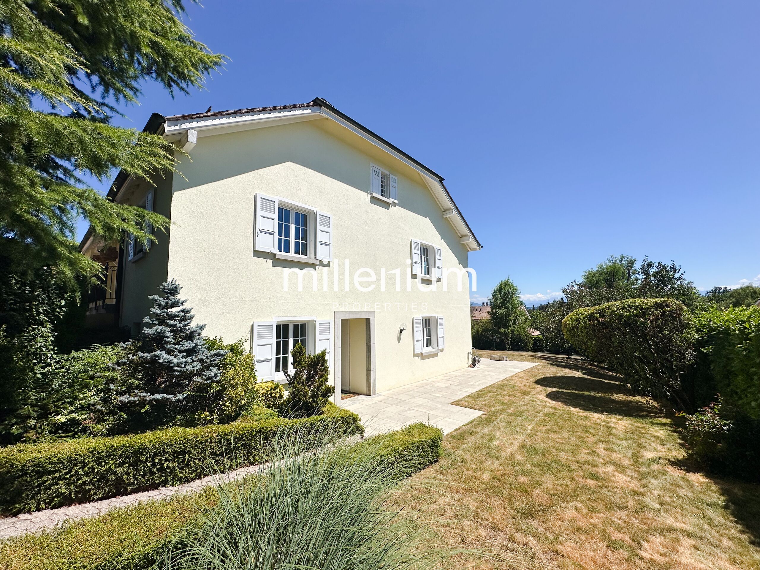 Située dans un environnement résidentiel calme et recherché, cette belle propriété de 420 m² habitables offre des volumes généreux, une rénovation récente de grande qualité et une vue dégagée sur le Mont-Blanc.