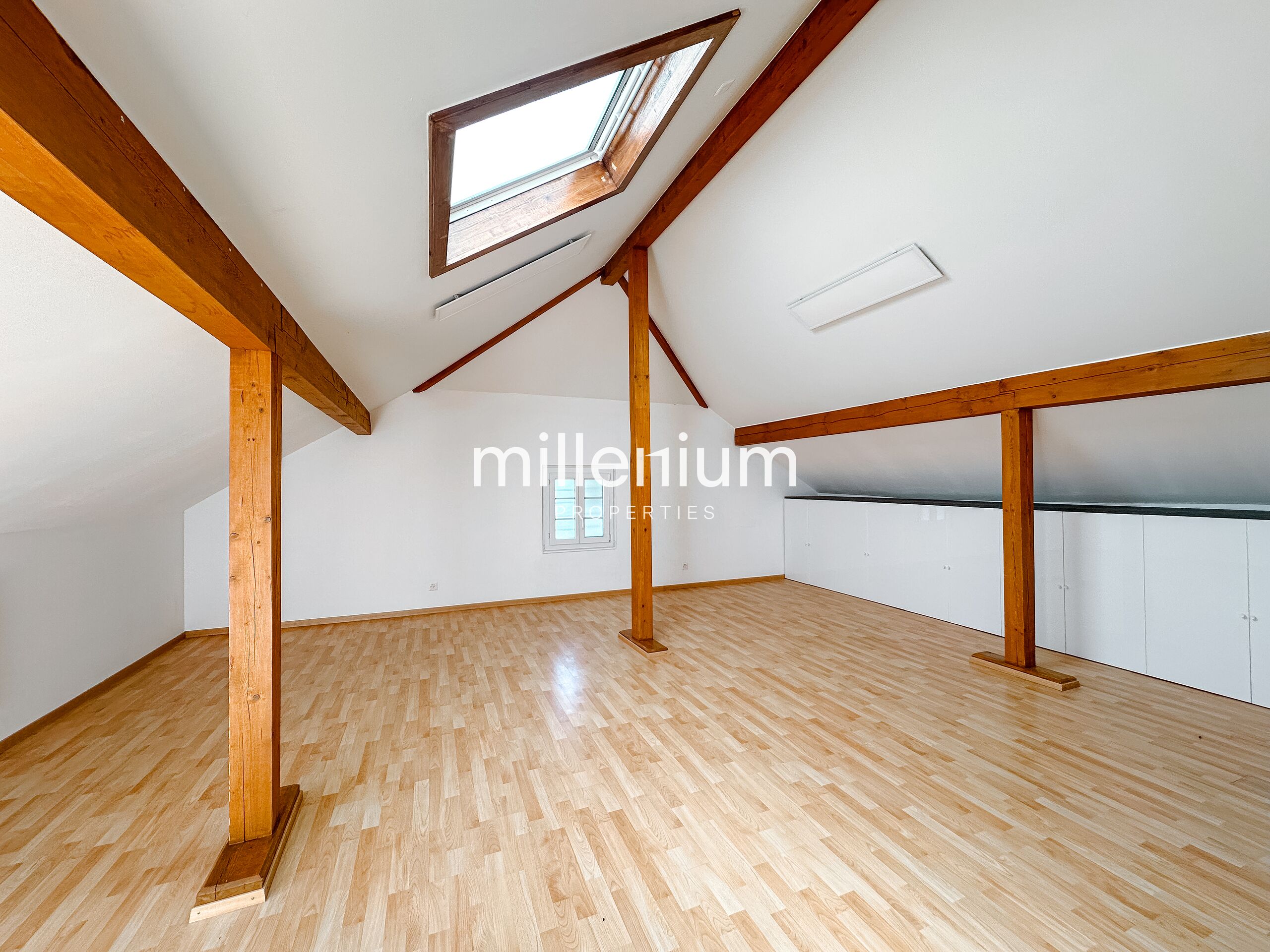 D’une surface d’environ 120 m², il a été aménagé en trois pièces polyvalentes avec rangements, pouvant faire office de chambres, d’espace de jeux, de bureau ou de salle de sport et deux WC