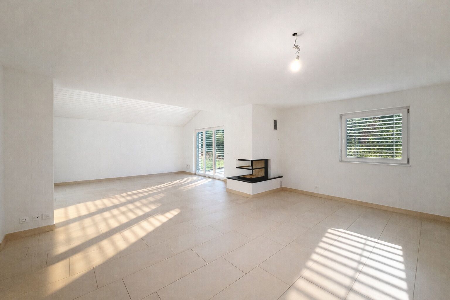 - Spacieux salon / salle à manger baigné de lumière, agrémenté d’une cheminée