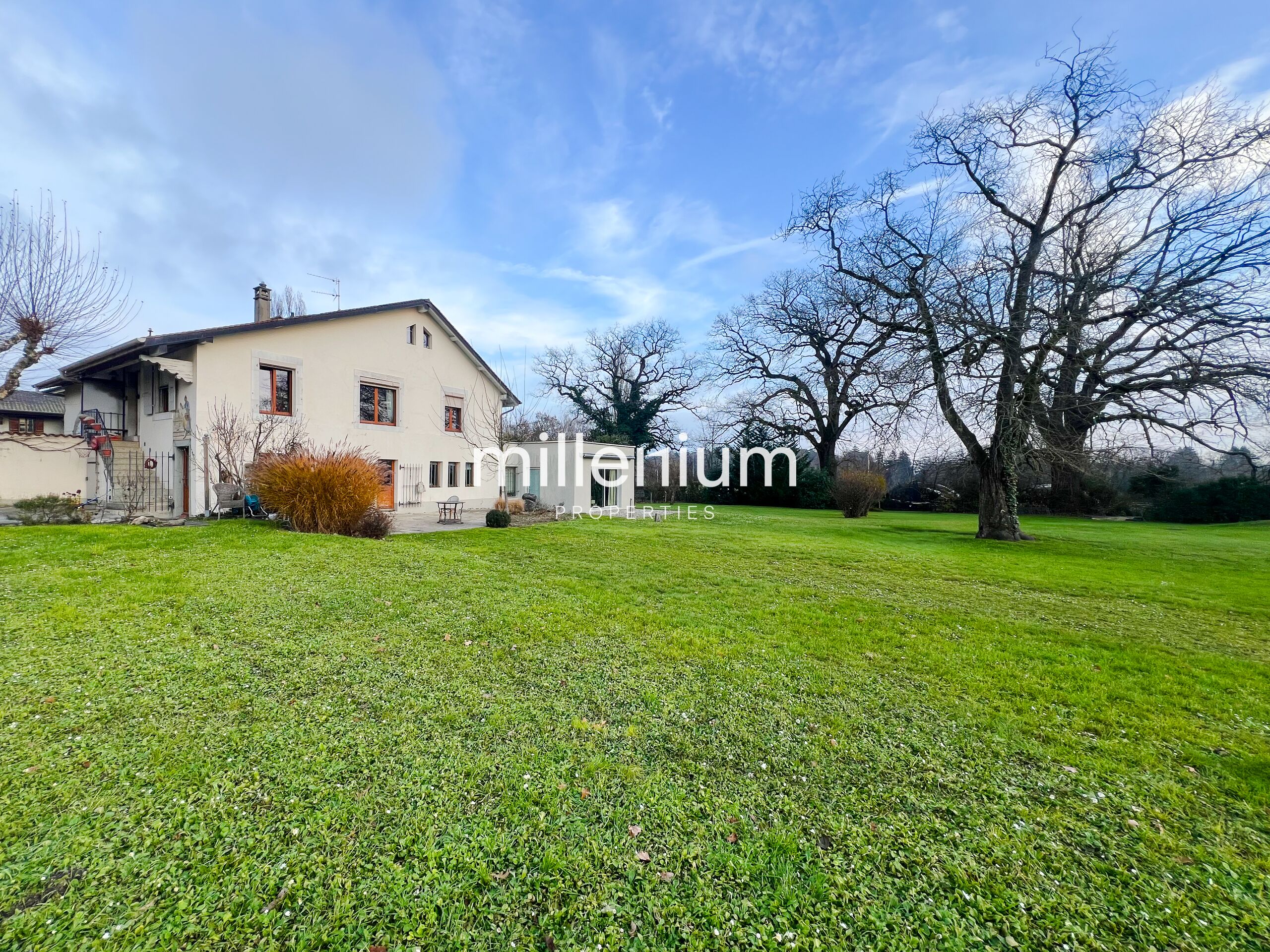Grande villa champêtre de 205 m2, située dans un quartier calme à Choulex, avec vue imprenable sur le jardin de 2000 m2 entièrement clôturé.
