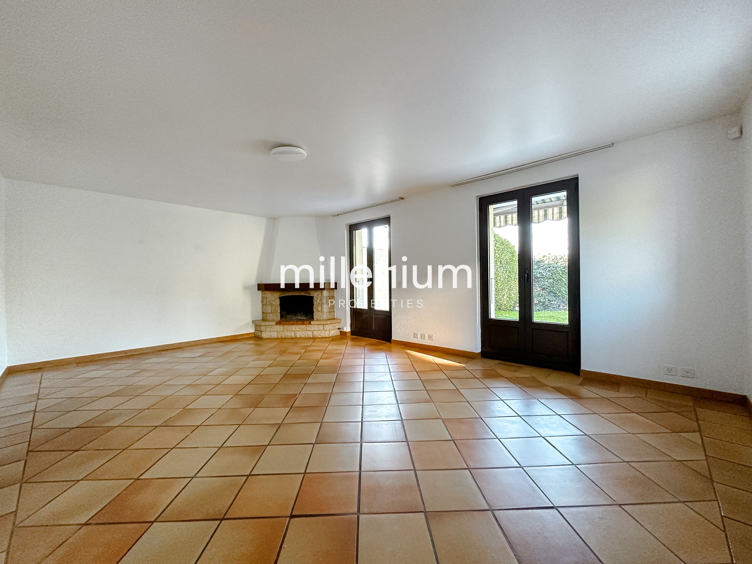 - Séjour / salle à manger avec cheminée et accès au jardin.