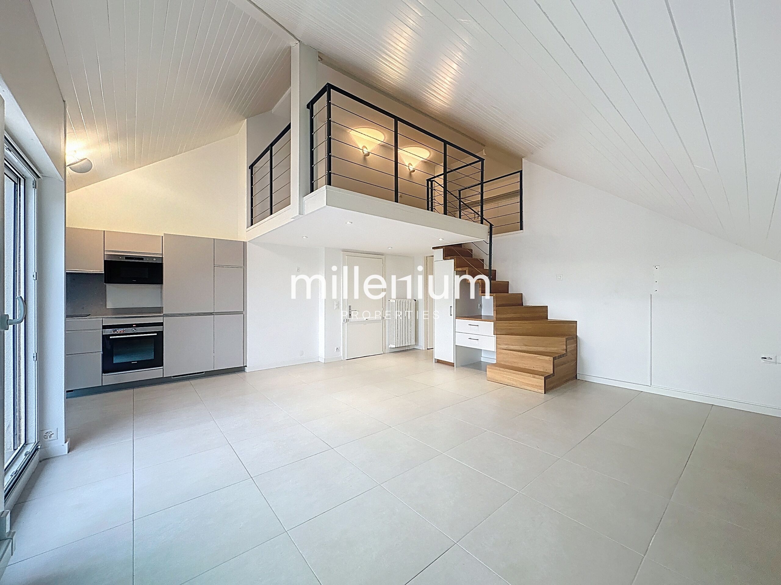 - Une mezzanine qui peut faire office de bureau ou chambre d’appoint