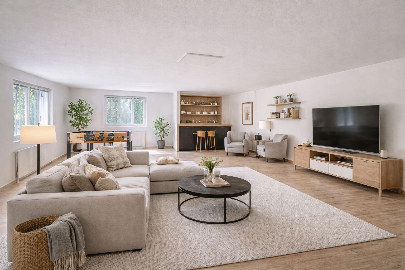 - Very large heated room with windows (ideal as a playroom, home cinema, or office)